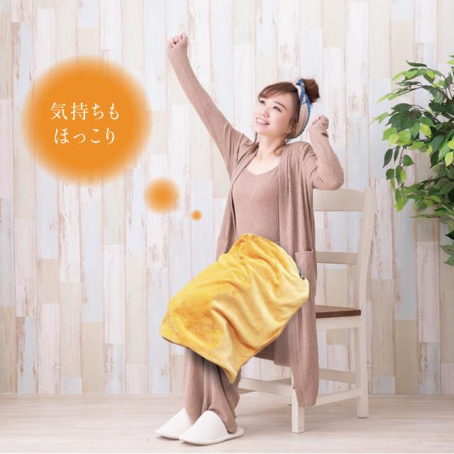 100×70cmの大きめサイズで膝下までしっかり覆ってくれます。