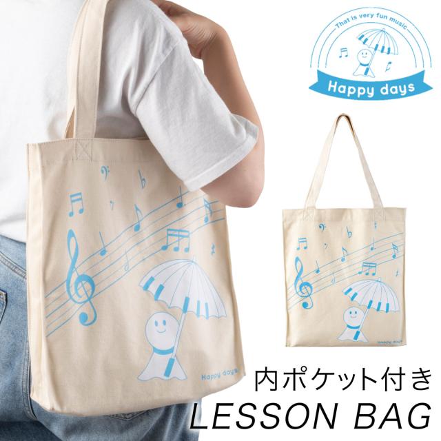 雨の日も楽しくなるような心はずむハッピーデイズシリーズ。肩がけできて重たい荷物もOKなレッスンバッグです。