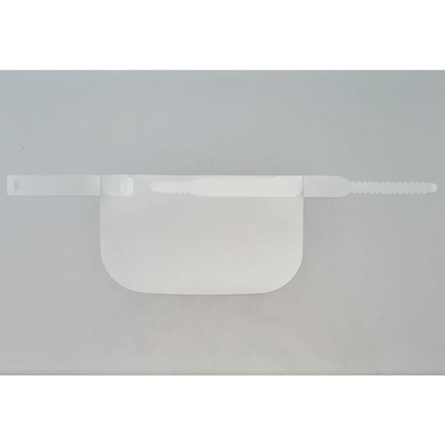 ○高透明のPETシートを使用し、ベルトとフェイスガード部が一体になった簡易フェイスシールドです。