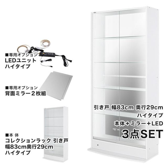 コレクションラック 本体+ミラー+LED 3点セット 幅83.1cm 奥行き28.5cm 高さ180cm CR-TH8329EM2 収納ラック ディスプレイラック(代引不可