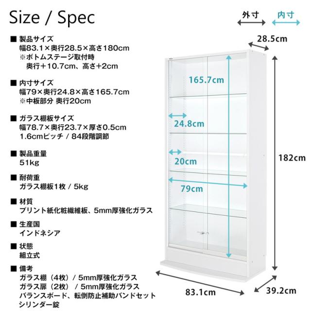 ・備考:ガラス棚(4枚)/5mm厚強化ガラス、シリンダー錠(1個)、ガラス扉/5mm厚強化ガラス、バランスボード、転倒防止補助バンドセット