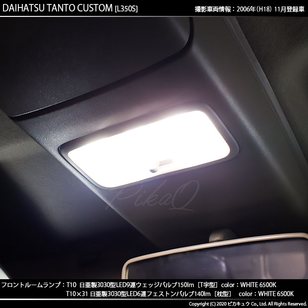 | ピカキュウ,LED専門店,LEDバルブ,LED,SMD,T10,W5W,日亜化学工業,日亜,3030,ルームランプ,カーテシ,バニティ,爆光,150lm,150ルーメン,ROOM,DAIHATSU,TANTO CUSTOM,ダイハツ,初代,タントカスタム,L350S,L360S |
