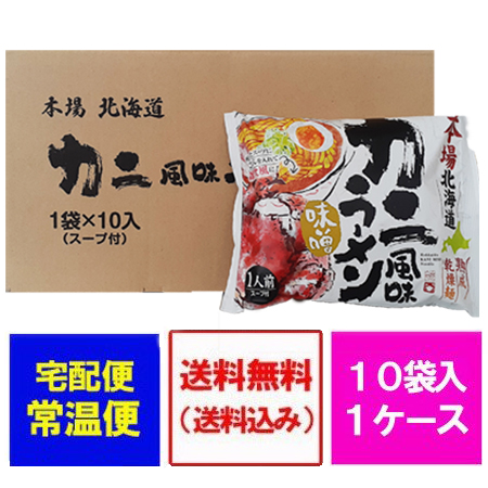 北海道 ラーメンお取り寄せ 送料無料 かに/カニ/蟹 風味 ラーメン 乾麺 味噌味 10袋 1箱(1ケース) 価格 2980 円 お取り寄せグルメ 海鮮 ラーメン