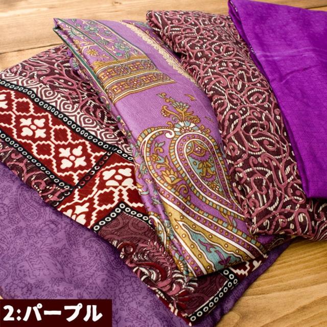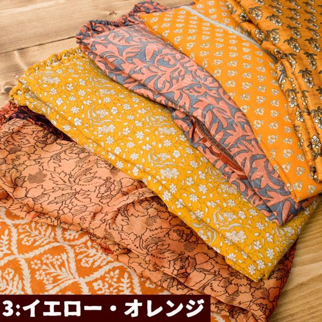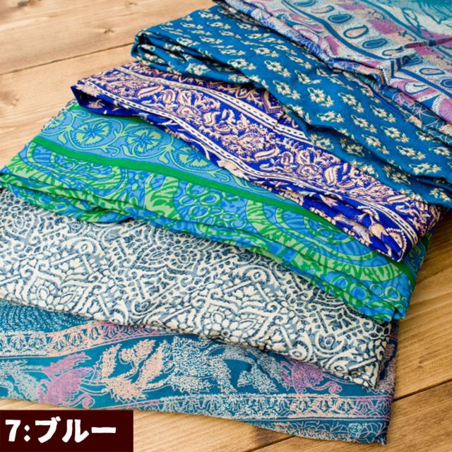 オールドサリーを縫い合わせているので、すべて1点物になります。色の組み合わせは、同じものが存在しないまさに世界で1枚だけのもの。どんな色の組み合わせが届くか、お楽しみ下さい。尚、すべて1点もののためアソートでのお届けとなります。色指定はお受けできかねますのでご了承くださいませ。