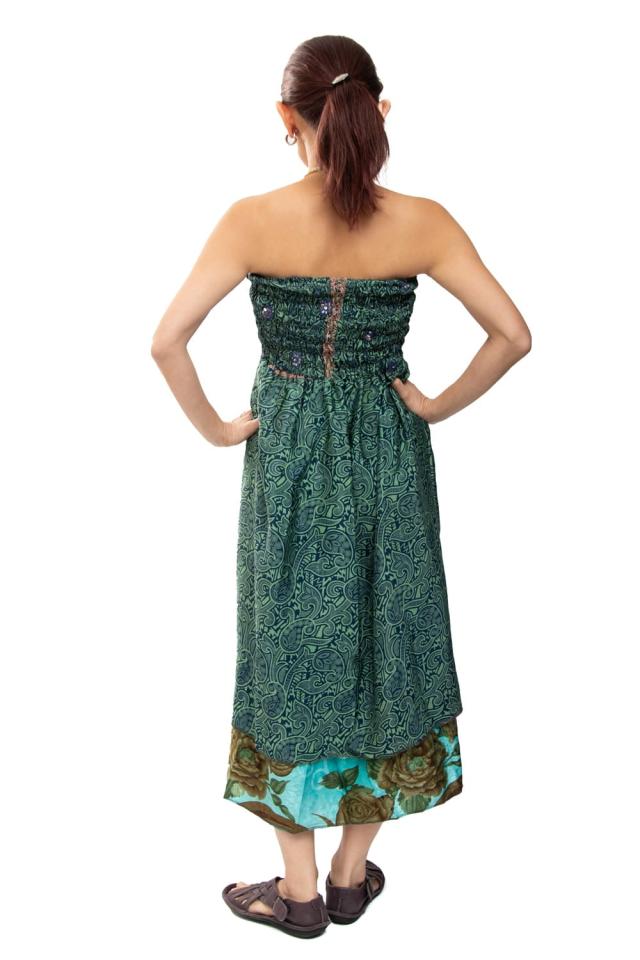 ひらりと揺れる柔らかいドレープが美しい オールドサリーの2WAYスカート / オールドサリー、マキシスカート、ロングスカート、ワンピース、インド スカート、旅行、リゾート、2WAY、 TIRAKITA(ティラキタ) エスニック衣料 【エスニック・アジアン衣料