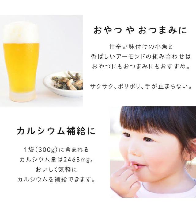 小魚アーモンド 300g 甘辛い味付け ゴマの香ばしさ 大きめ カタクチイワシ 食べ応え アーモンド小魚 カルシウム 小魚ミックス おつまみ おやつ 間食 小魚おやつ 小魚おつまみ 魚 鰯 食品 片口いわし 小魚 アーモンド まとめ買い * 【メール便】