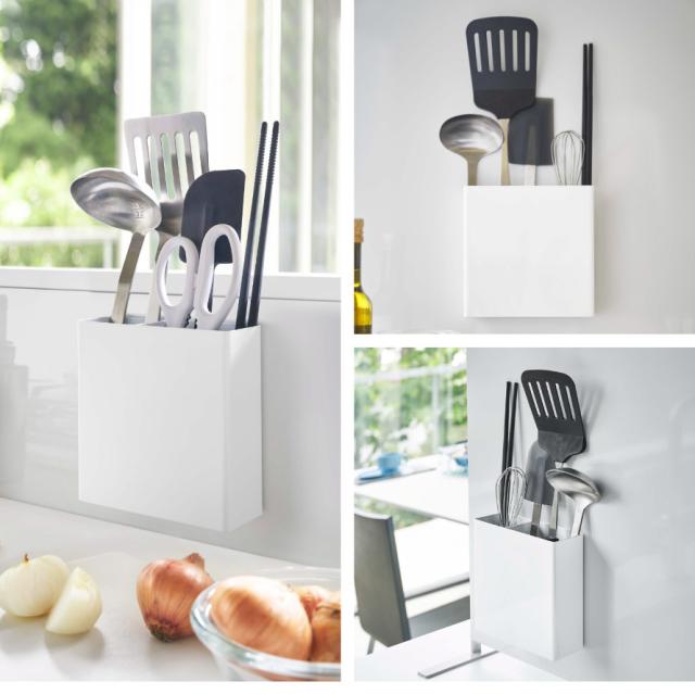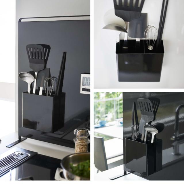 マグネットが付くキッチンパネルやスチールパネル、冷蔵庫横などに簡単取り付けできるキッチンツールスタンド。カトラリーやお玉などをスマートに収納。