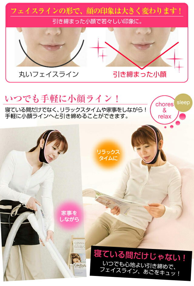寝ている間だけでなくリラックスタイムや家事をしながら手軽に小顔ラインへと引き締めることが可能です♪
