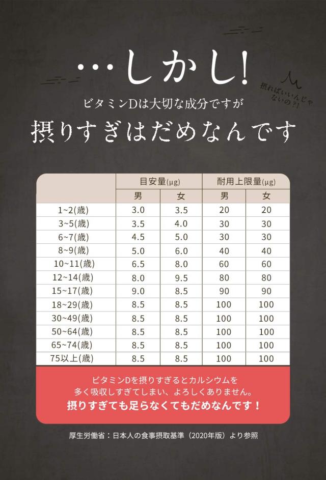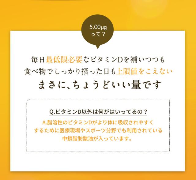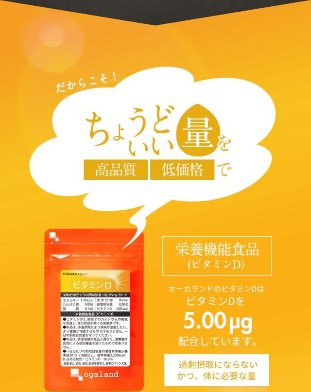 主要原料(1カプセルあたり):ビタミンD 5.00μg