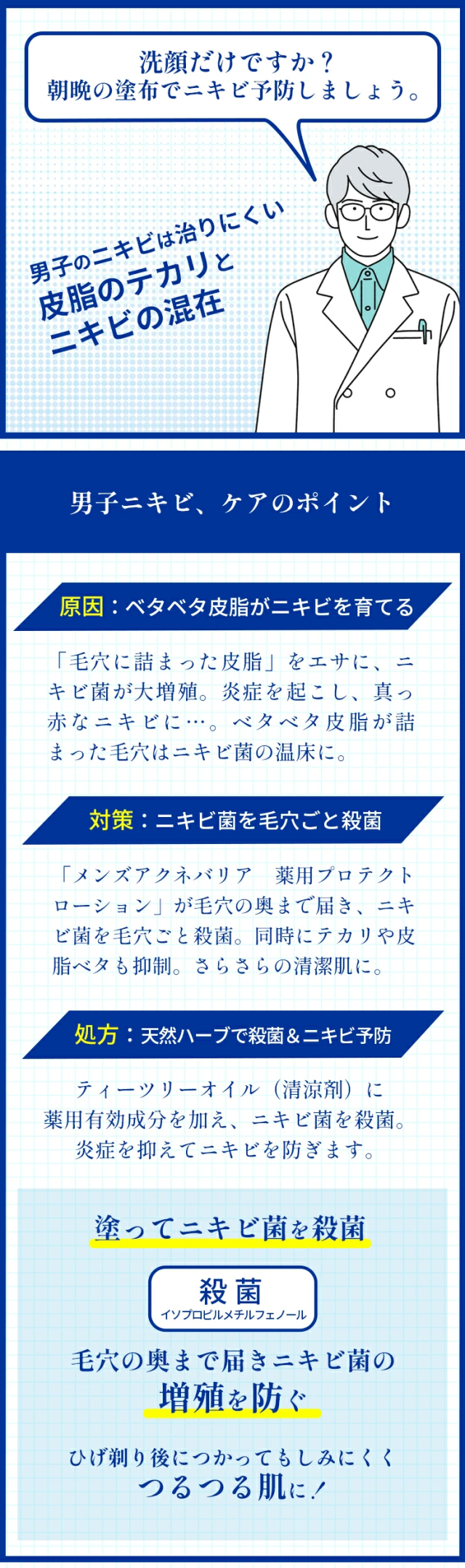 治りにくい男子ニキビを研究して開発された「メンズアクネバリア」 |