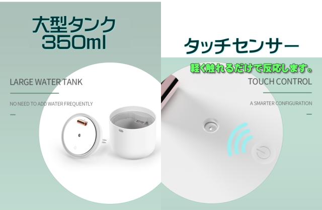 【加湿】約6畳の広さまで対応。肌や喉の乾燥から守る!350mLの水タンク。