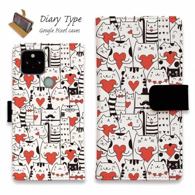 Google Pixel 10 Pro XL ピクセル10 プロ スマホケース 手帳型 マグネット カード収納 Google Pixel9a Pro Google Pixel8a Pro Google Pixel7a Pro Google Pixel6a Google Pixel6 猫 ネコ 用品 雑貨 ハート猫