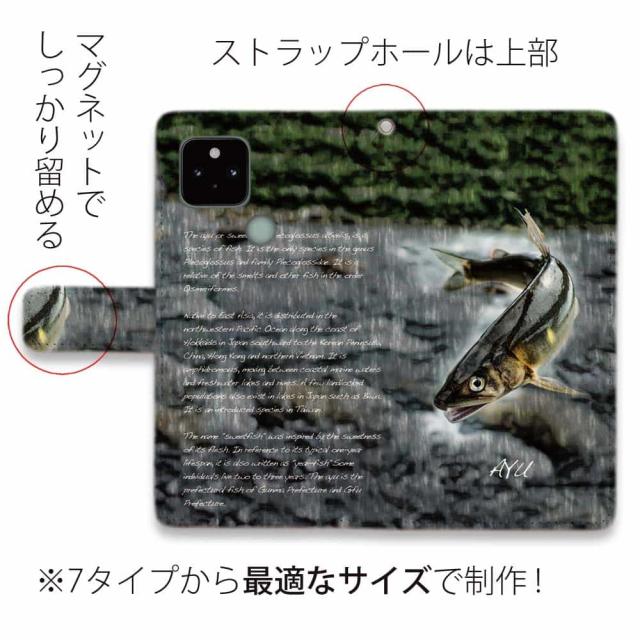 Google Pixel 10 Pro XL ピクセル10 プロ スマホケース 手帳型 マグネット カード収納 Google Pixel9a Pro Google Pixel8a Pro Google Pixel7a Pro Google Pixel6a Google Pixel6 釣り 魚 ルアー 飛翔するアユ