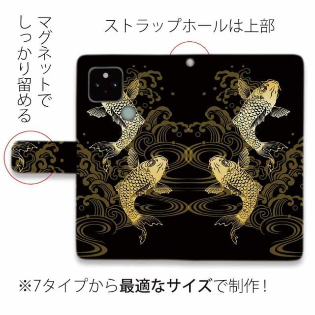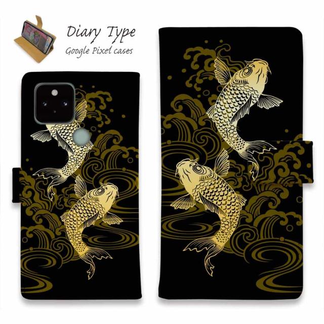 Google Pixel 10 Pro XL ピクセル10 プロ スマホケース 手帳型 マグネット カード収納 Google Pixel9a Pro Google Pixel8a Pro Google Pixel7a Pro Google Pixel6a Google Pixel6 釣り 魚 ルアー タトゥー風昇り鯉 ゴールド&ブラック