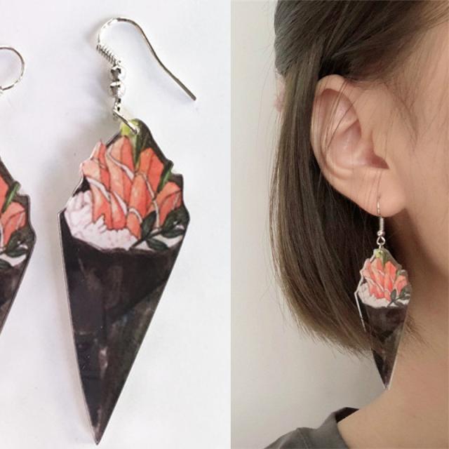 お寿司屋さんや職人さんにオススメのサーモンとレタスを手巻きにしたサラダ巻をモチーフにしたオモシロいステンレスピアス。