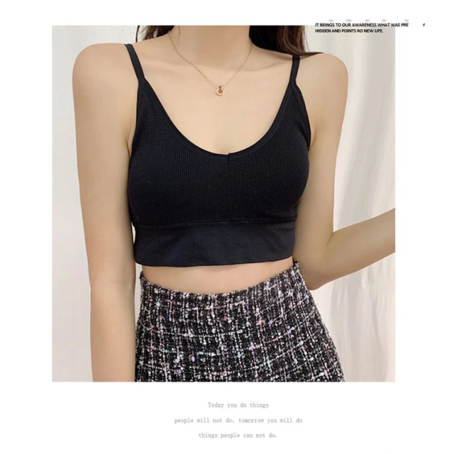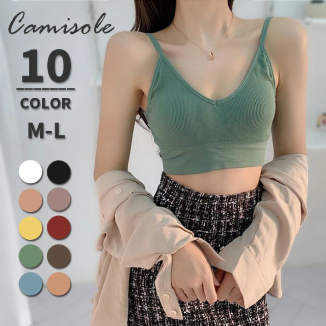 ブラトップ キャミ ブラジャー カップ付き ショート丈 リブニット インナー キャミソール ナイトブラ スポーツブラ ノンワイヤー パット 締め付けない 育乳 大人 可愛い おしゃれ 下着 ランジェリー セクシー シンプル 無地 盛れる 小胸 黒 白