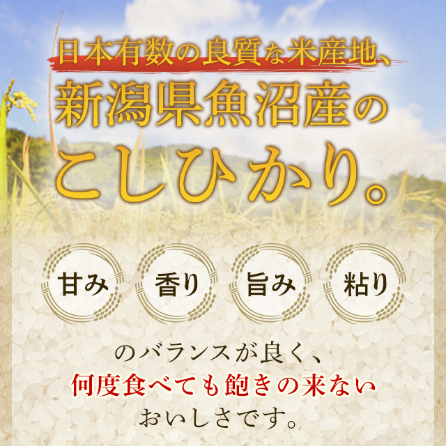 商品名 令和7年産 新潟県魚沼産こしひかり10kg(5kg×2袋) 容量 10kg(5kg×2袋) 原材料名 単一原料米 アレルギー特定原材料 ー 保存方法 高温多湿を避け、冷暗所で保存してください。(常温)