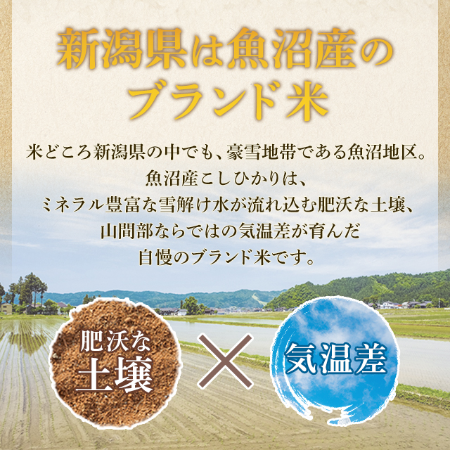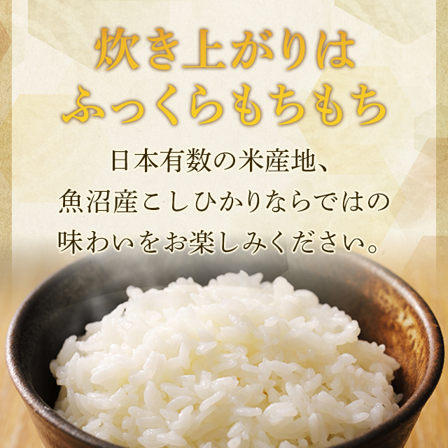 - 初めて購入した時は、米粒の大きさに、さすが魚沼産コシヒカリ、美味しいと何回か購入しました。でも段々粒が小さくなり、白い米が多くなった。それなのに値段は上がり、とても残念です。魚沼産コシヒカリと言えない...
