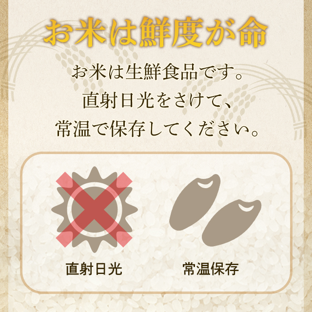 ・お米に賞味期限はありませんが、徐々に劣化(酸化→古米化→食味低下)します。到着後はお早めにお召し上がりください。