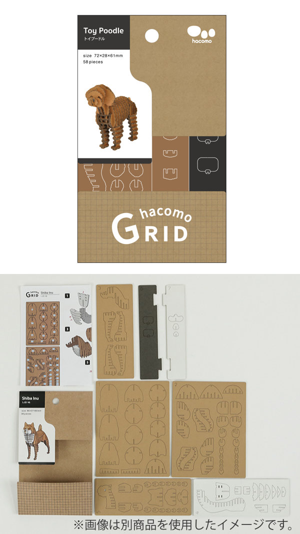 トイプードル パズル 犬 紙製 GRIDシリーズ 立体パズル 組立 ( 工作キット ペパークラフト ペーパーアート キット 動物 段ボール 組み立て 作る 差し込むだけ 簡単 リサイクル エコ ミニチュア 模型 ミニ 立体的 本格的 )