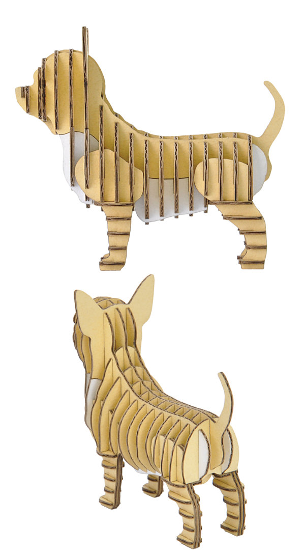 人にも環境にもやさしい段ボール素材からできた工作キットです。精密にレザーカットされた小さな段ボールパーツを差し込んでいくだけで立体的なチワワが誕生します。自由に組み立ててあなただけの世界を作り上げてください。
