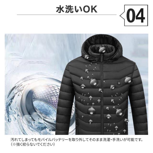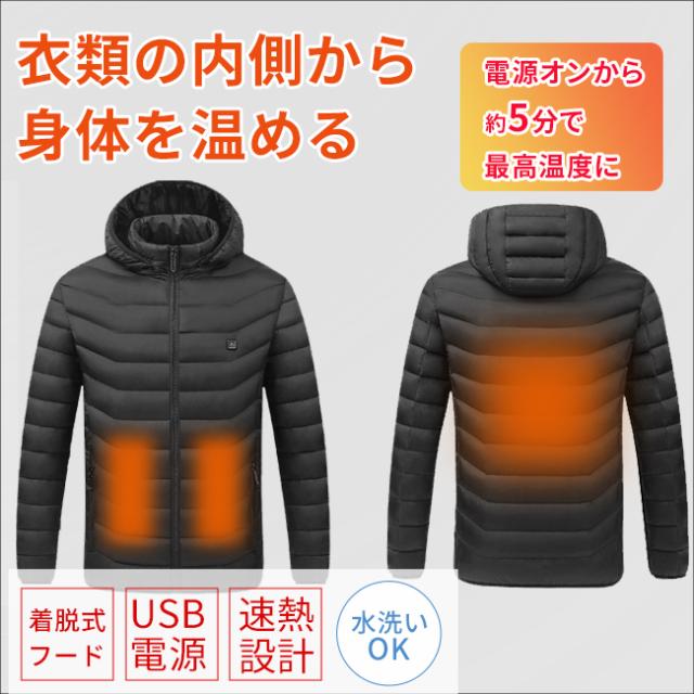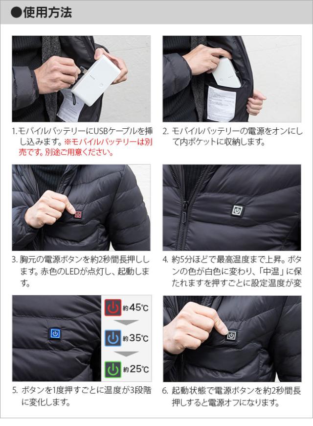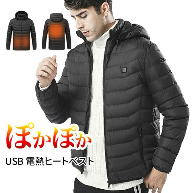 送料無料 USB 電熱ジャケット 電熱中綿ジャケット モバイルバッテリー ヒーター内蔵 電熱ウェア 電熱ヒーター バッテリー 電熱アウター 電気ジャケット ヒーター付き ヒータージャケット ヒートジャケット ダウン メンズ 男性 あったかグッズ 防寒対策