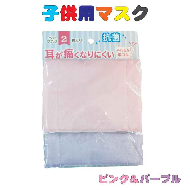 子供用マスク ペアマスク ピンク&パープル柄 繰り返し洗って使えるマスク 耳にやさしい平ゴム キッズマスク 小学校 学校給食 保育園 幼稚園