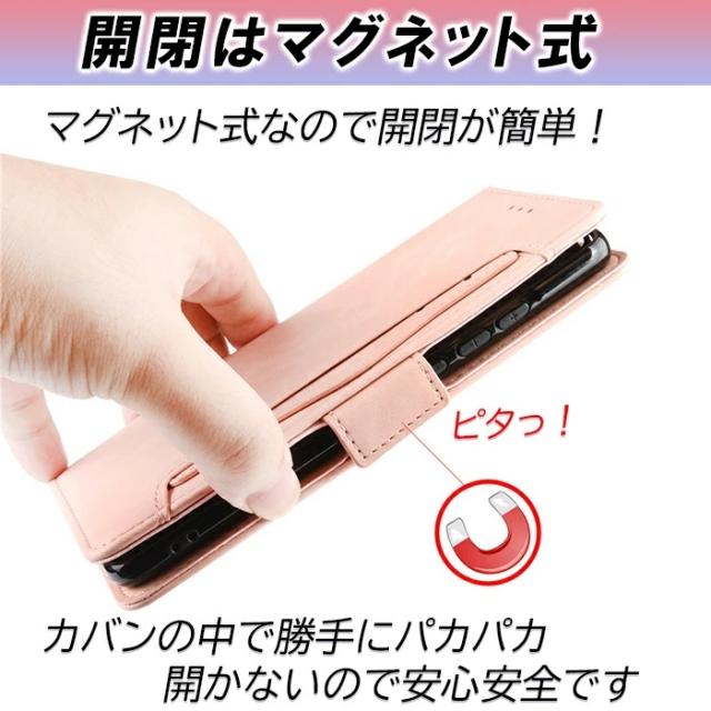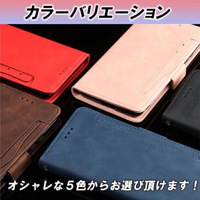 AQUOS sense4/sense5G/sense4plusに対応したオシャレな手帳型スマホケースですカードポケットが豊富で、収納力抜群です●スタンド機能動画視聴時などにとても便利な自立スタンド機能●スライドカードポケット付き外側にスライド式のカードポケットを搭載!ICカード収納に最適です。●内側にも収納ポケット付き内側にカードポケットとサイドポケットが付属されています。カードやお札を入れるのにとても便利!●落下防止に便利なストラップホール付きです●マグネット式開閉ピタっと閉まる内蔵マグネットなので開閉がとても簡単です●おしゃれなカラー大人なイメージのブラック、かわいいレッドなど、5色からお選び頂けます※実物の色に近づけるように心がけておりますが、お使いの環境により画像の色が実物の色と違って見える場合があります※カメラ穴位置は対応機種によって異なります●カラー: 以下からご選択くださいブラック / ブルー / ブラウン / レッド / ピンク●対応機種: 以下からご選択ください・AQUOS sense4 (sense4 lite) / sense5G・AQUOS sense4 plus●素材: TPU、レザー