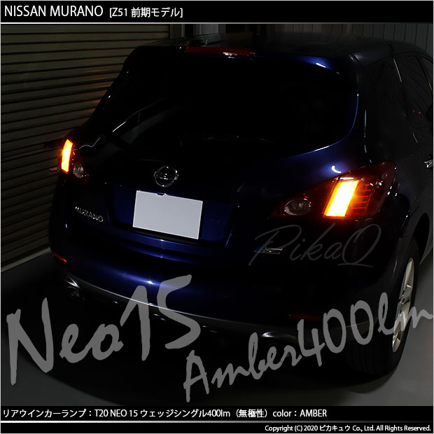 ニッサン ムラーノ[Z51系 前期モデル]対応ウインカーランプ用 LEDバルブ (フロント・リア対応) 全光束400ルーメン T20S LED TURN SIGNAL BULB 『NEO15』ウェッジシングル球 LEDカラー:アンバー 1セット2個入り | ||||