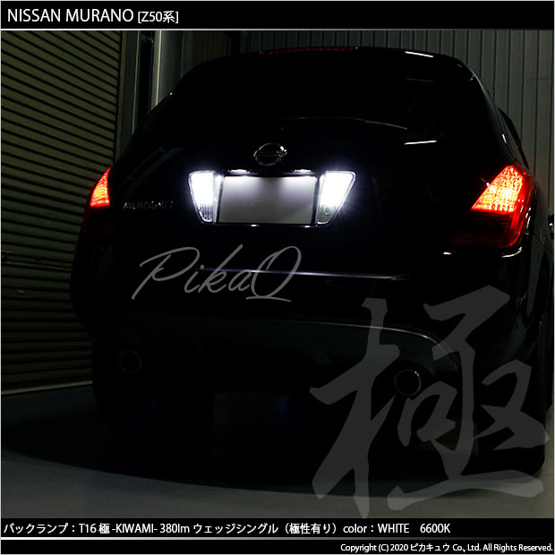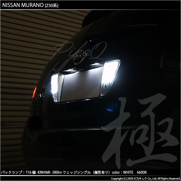 ニッサン ムラーノ[Z50系]対応 バックランプ用LEDバルブ T16シングル 極-KIWAMI-(きわみ) 全光束380lm ウェッジシングル球 LEDカラー:ホワイト 色温度6600K 1セット2個入り | ||||