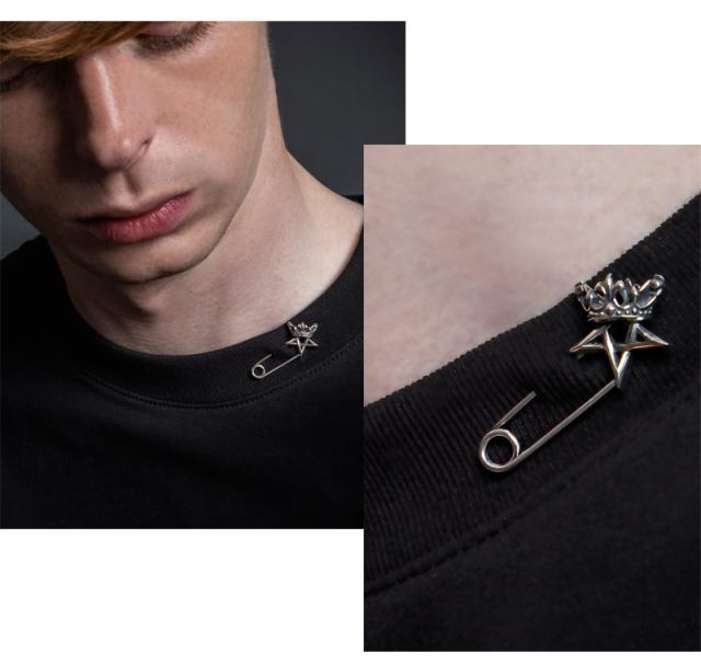 | 仕様 | パンクの象徴にも使われるセーフティピンをモチーフにしたアクセサリー。 「五芒星に王冠」モチーフをヘッドにあしらったデザインもキュートな作品。 ペンダントやブローチ、ピアスなどとしても使用可能! |