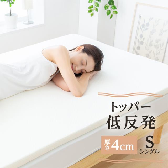 低反発トッパー4cm S ホワイト LPT4-S サポート寝具 マット 低反発 プラス寝具 体圧分散 厚み4cm 三つ折り シングル ゴムバンド付 洗えるカバー
