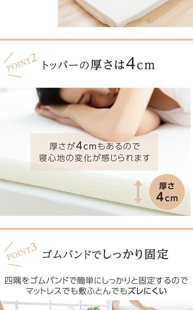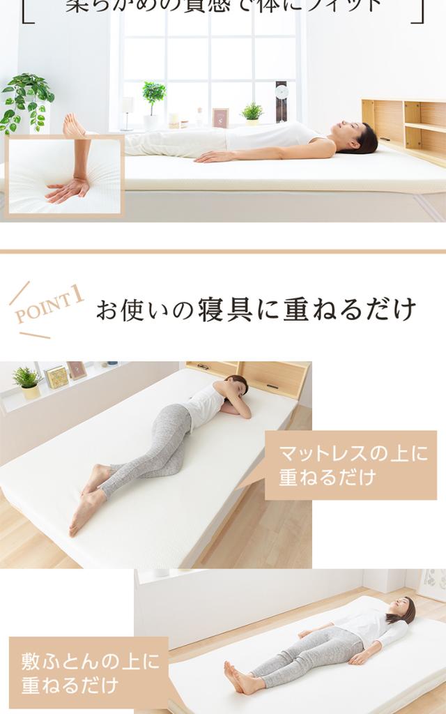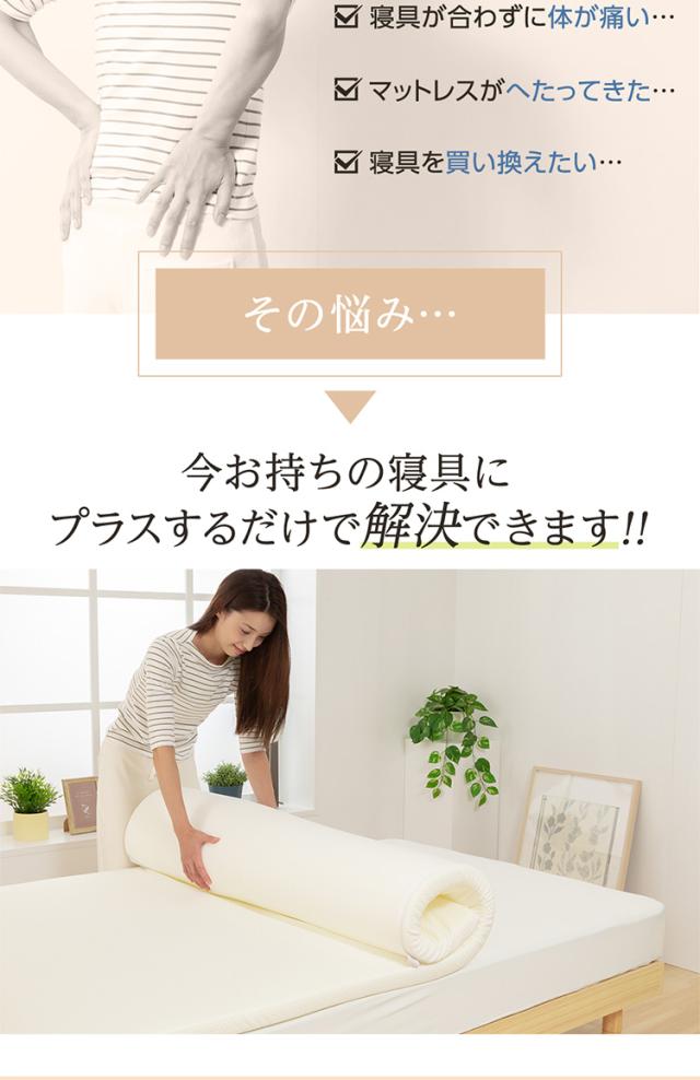 今お持ちの寝具で、へたりや寝心地の悪さを感じた時に上に重ねて使用するサポート寝具のトッパー。