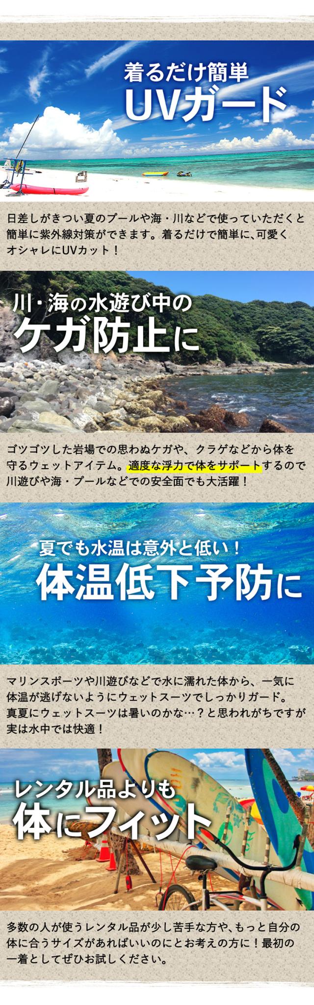 マリンスポーツや川遊びなどで水に濡れても体温が逃げないようにガード