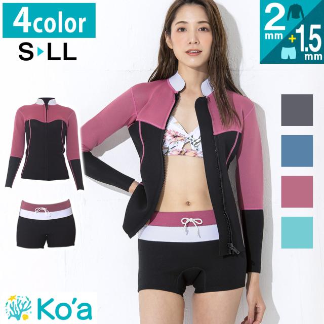 ショートパンツ 1.5mm & タッパー 2mm セット レディース ウェットスーツ Koa サーフィン 上下セット
