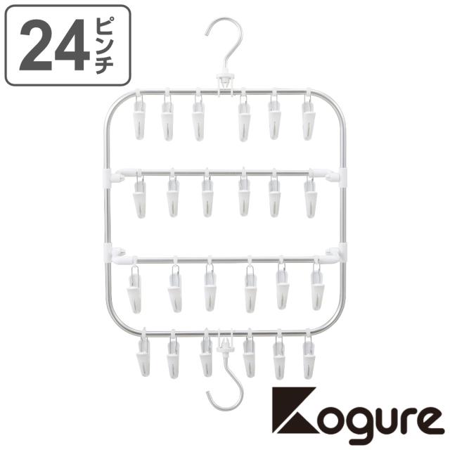 洗濯ハンガー Kogure 24ピンチ 隙間干し2WAYハンガー 省スペース ピンチハンガー ( 角ハンガー タオルハンガー ピンチ 洗濯ばさみ 跡がつきにくい 洗濯物干し 24P たて よこ 2way タオル 下着 小物 便利 )