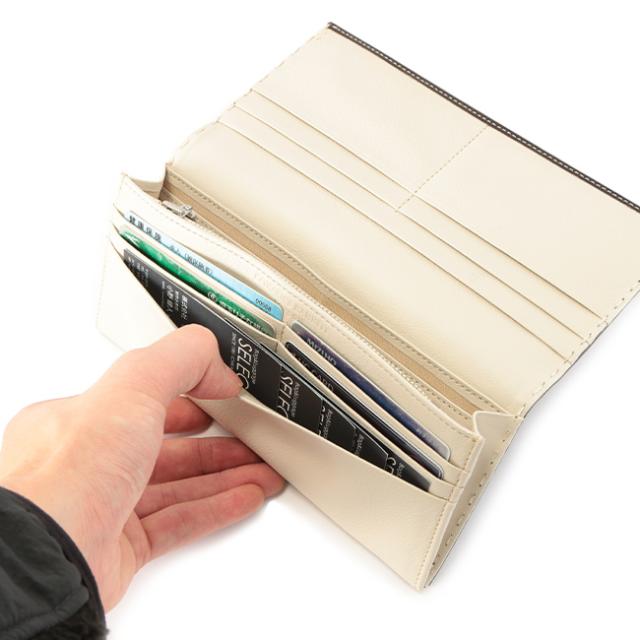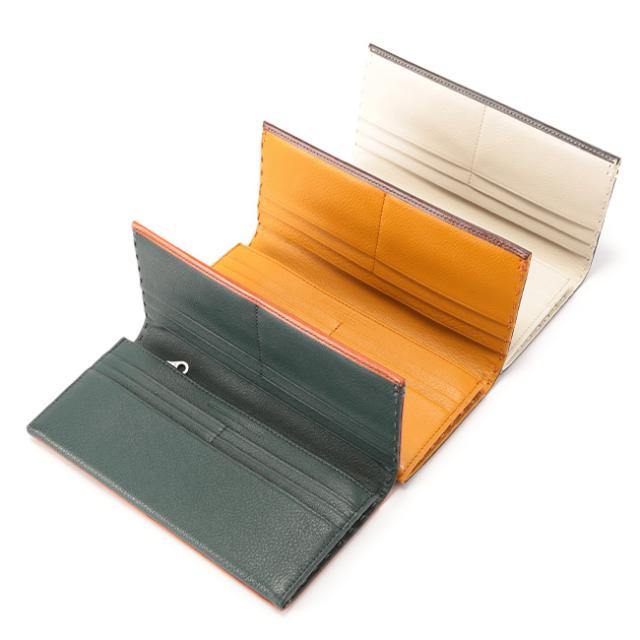 | ブランド |キャサリンハムネット / KATHARIN HAMNETT シリーズ |カラーテーラード2 / COLOR TAILORED Ⅱ 品番 |490-58706 形状 |長財布 / 小銭ファスナー内側 外寸 |W195×H90×D20[mm] 重量 |約 140g 素材 |表革:国産 牛ヌメ革 |内装:リサイクルポリエステル繊維 ECOPET |