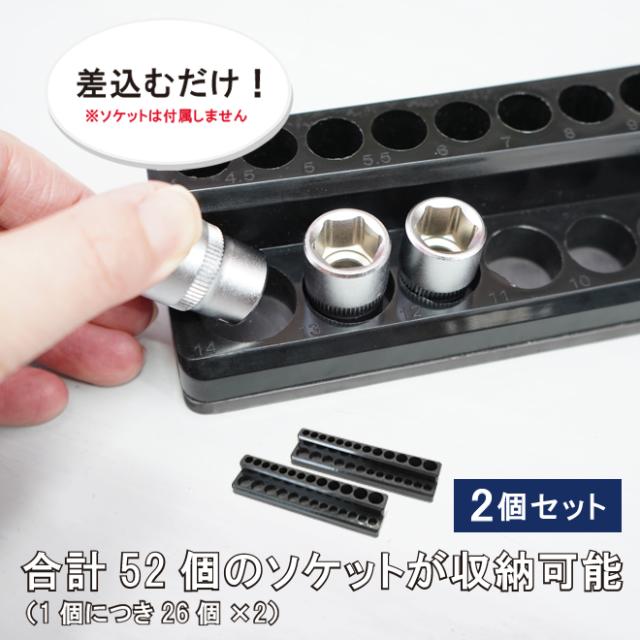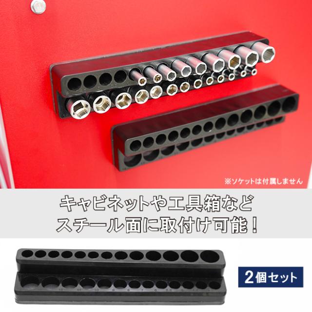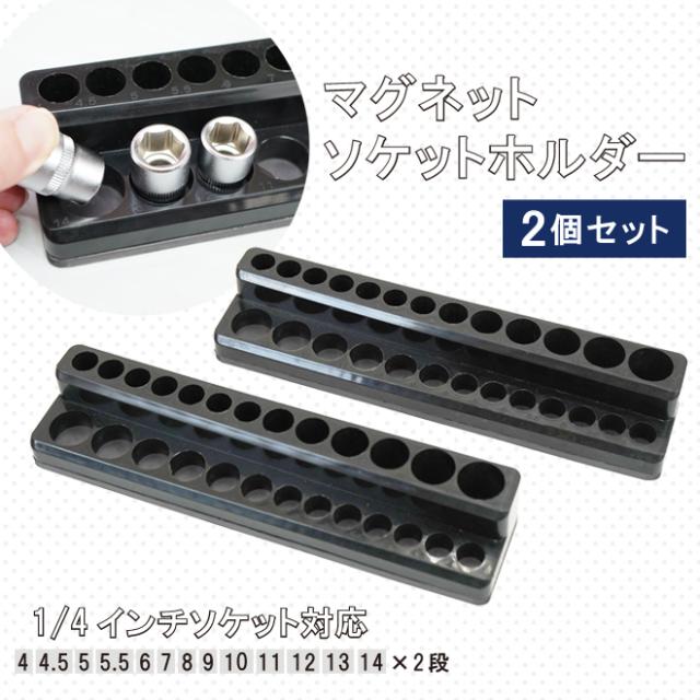 マグネットソケットホルダー 差込角1/4” 6.3mm 2個セット 2段 計52個 ソケット収納 ソケットトレー 磁石 コマ整理 KIKAIYA