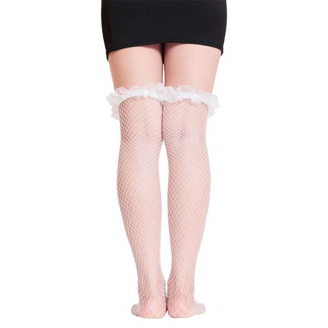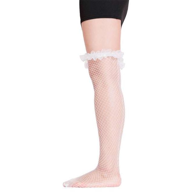 My Luxury ニーハイソックス フィッシュネット フリル ホワイト オーバーニータイプ 網タイツ 膝上ストッキング コスプレグッズ
