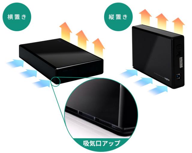 空気の通り道を絞り込むことで流速を上げ(ベンチュリ効果)、スムーズな排熱を実現した「空冷構造」で“空気の通り道”を考慮しました。また、横置きでも縦置きでも吸気口が製品下部にくる「ダブルデッキエアフロー構造」を採用。騒音の原因となる空冷ファンを搭載せず、静かで安定した稼働を保ちます。