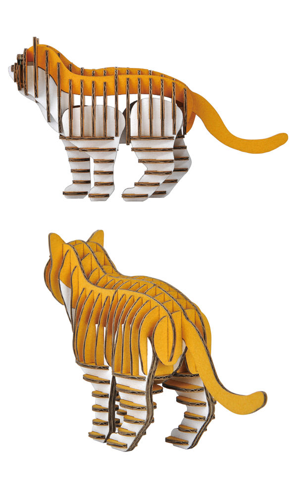 人にも環境にもやさしい段ボール素材からできた工作キットです。精密にレザーカットされた小さな段ボールパーツを差し込んでいくだけで立体的なスコティッシュフォールドが誕生します。自由に組み立ててあなただけの世界を作り上げてください。