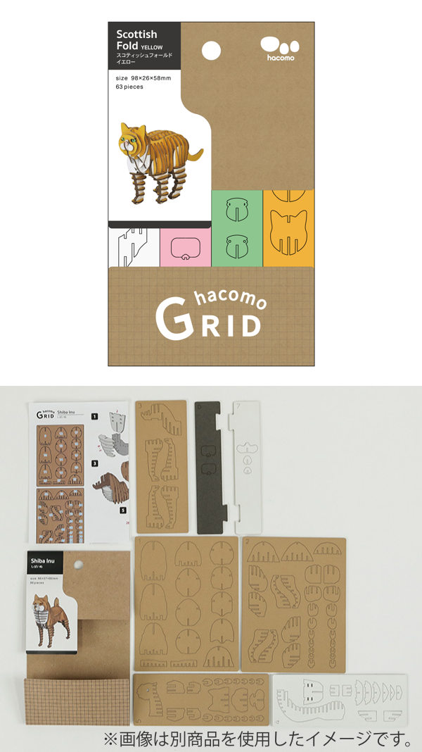 スコティッシュフォールド パズル 猫 紙製 GRIDシリーズ 立体パズル 組立 ( 工作キット ペパークラフト ペーパーアート キット 動物 段ボール 組み立て 作る 差し込むだけ 簡単 リサイクル エコ ミニチュア 模型 ミニ 立体的 )