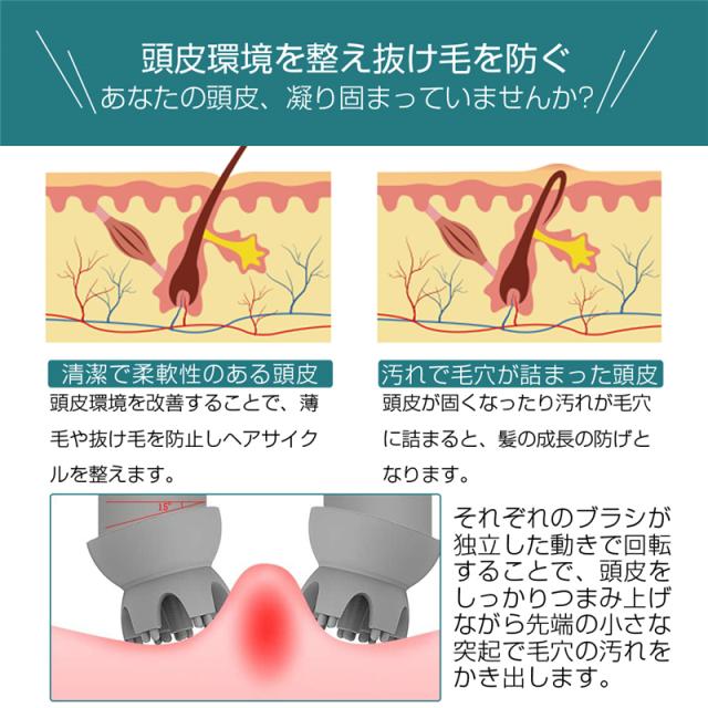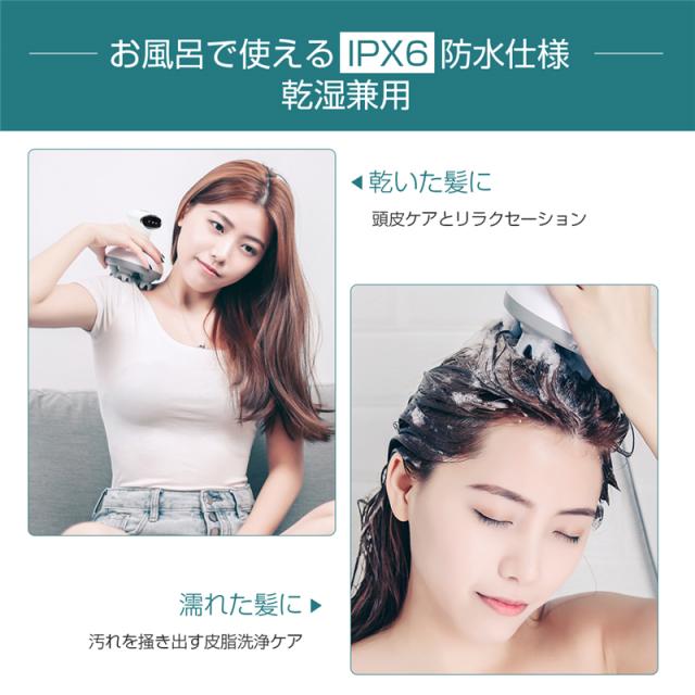 【乾湿両用】本体は防水仕様なので、シャワーの時も使用可能です。髪を洗う際に、頭皮の汚れを優しく除いて、毛根も爽やかで元気になれます。お風呂時にも安心して使用できます。乾いた髪にもお使いいただけますので、テレビを見ながらや、就寝前などに気持ちよく頭皮のケアをするのもおすすめです。