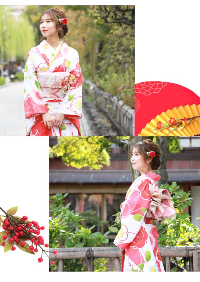 最大20日間レンタル 当店オリジナル 成人式 振袖 レンタル 20点フルセット 派手「白・赤ピンク地に梅と椿」 成人式 結婚式 フォーマル 小紋柄