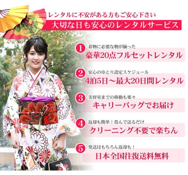 ※こちらは成人式利用の振袖レンタルです。2月〜12月上旬利用のお客様は別のページをご覧ください。