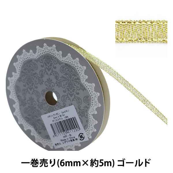 リボン 『一反売り メタリックリボン 幅6mm×約5m巻 ゴールド』