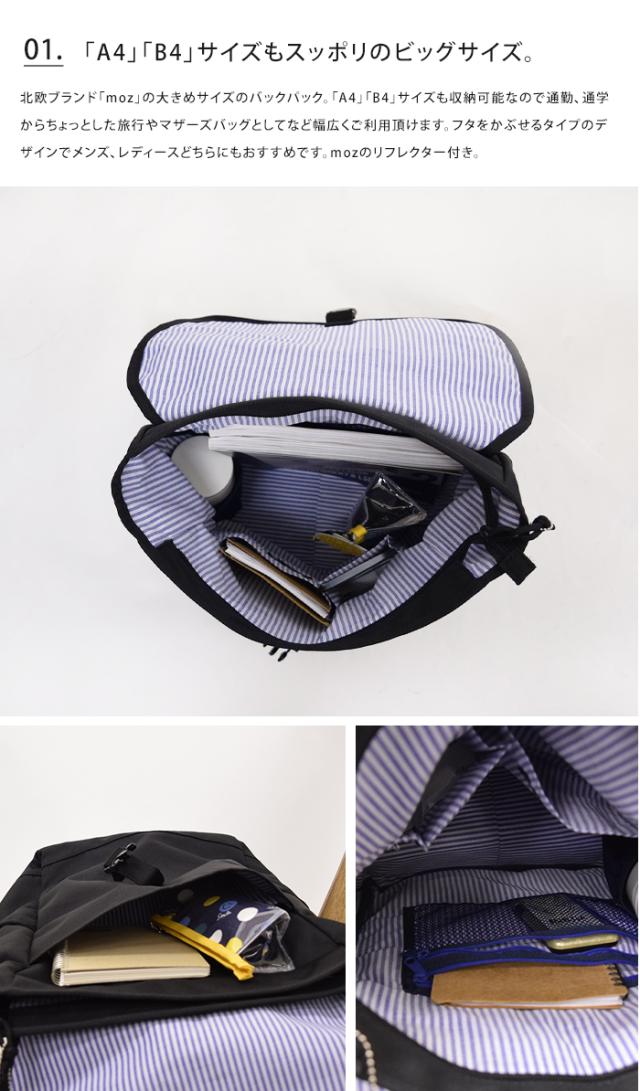送料無料 moz リュック【レディース バッグ おしゃれ 大容量 A4 B4 バック バックパック 通学 通勤 鞄 北欧 モズ モス メンズ リュックサック】