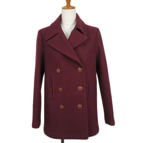 【中古】ドゥクラッセ DoCLASSE コート ダブル ミドル ウール 7 ボルドー ワイン レディース