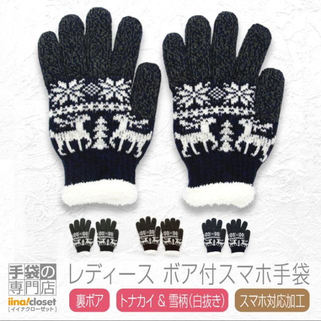 手袋 レディース スマホ対応 暖かい おしゃれ スマホ 日本製 冬 ボア ニット 2重構造 ノルディック 雪