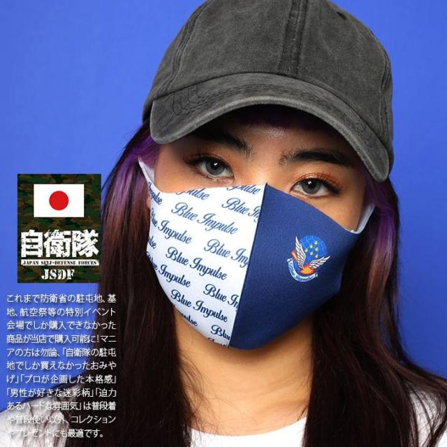 【処分セール】自衛隊 グッズ ブルーインパルス エンブレム 空自 洗える マスク 布マスク 全4色 航空自衛隊 Blue Impulse おしゃれ かっこいい 切り替え スコードロンマーク アシンメトリー 航空 アーミー ミリタリー ZR-MK-CO-025